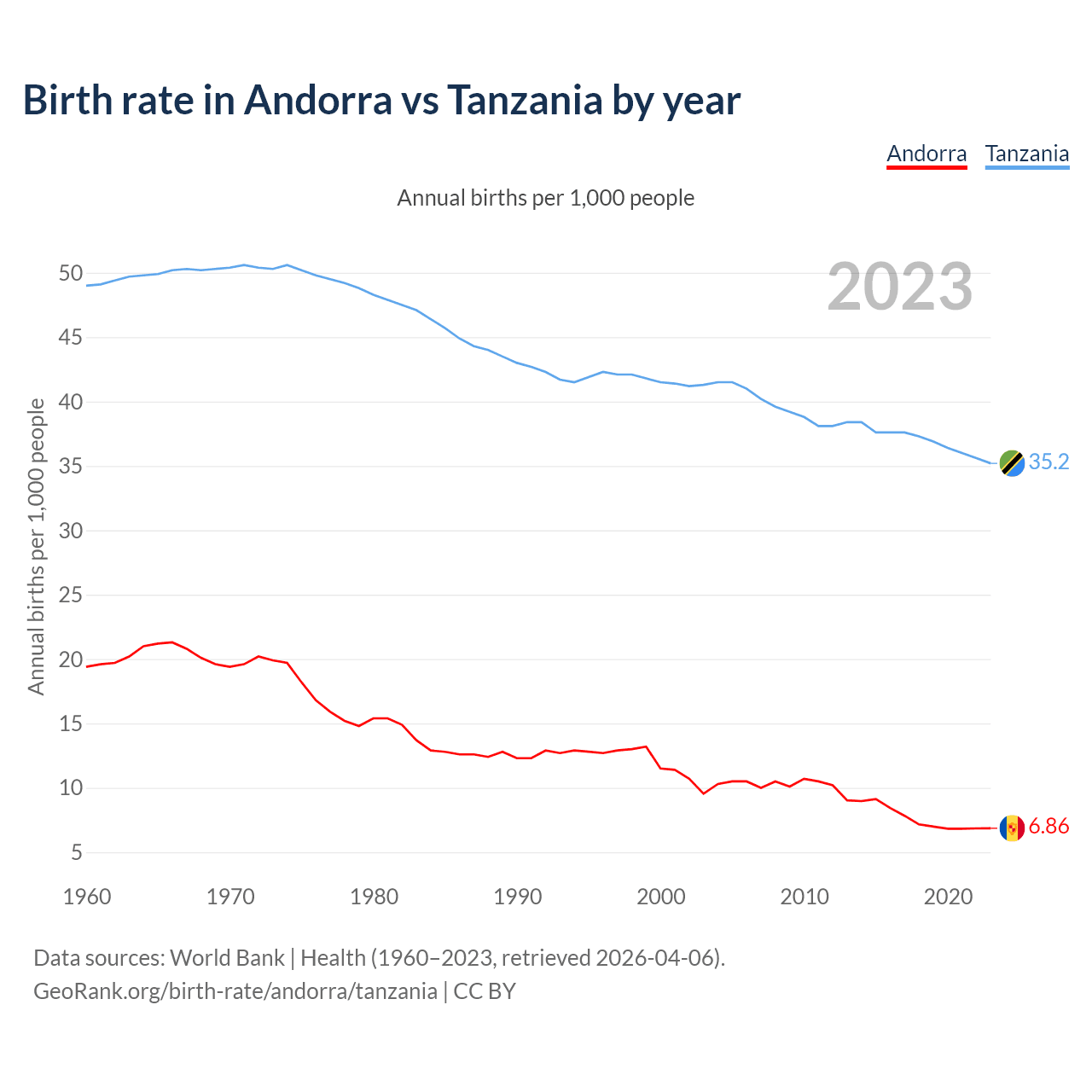GeoRank.org/birth-rate/andorra/tanzania | CC BY