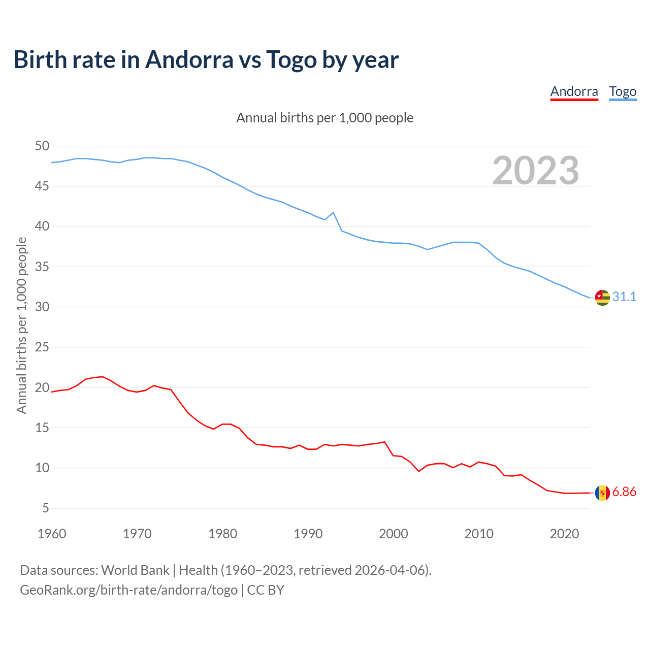 GeoRank.org/birth-rate/andorra/togo | CC BY