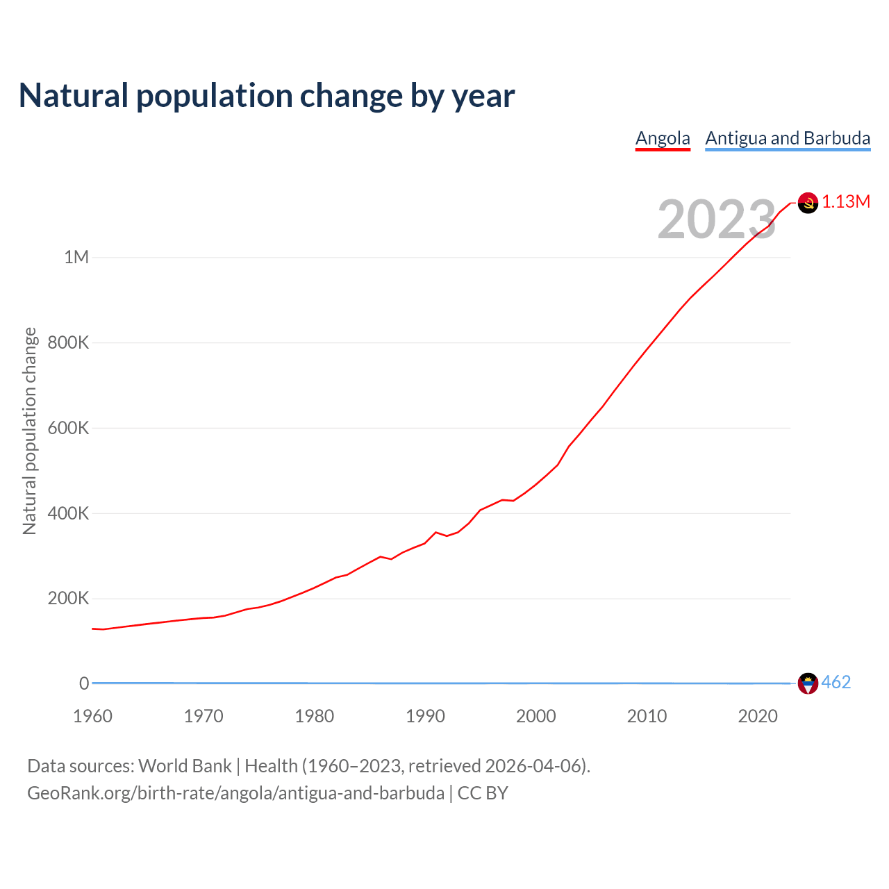 Check Angola vs Antigua and Barbuda population clock for a dynamic visualization of the changing population.