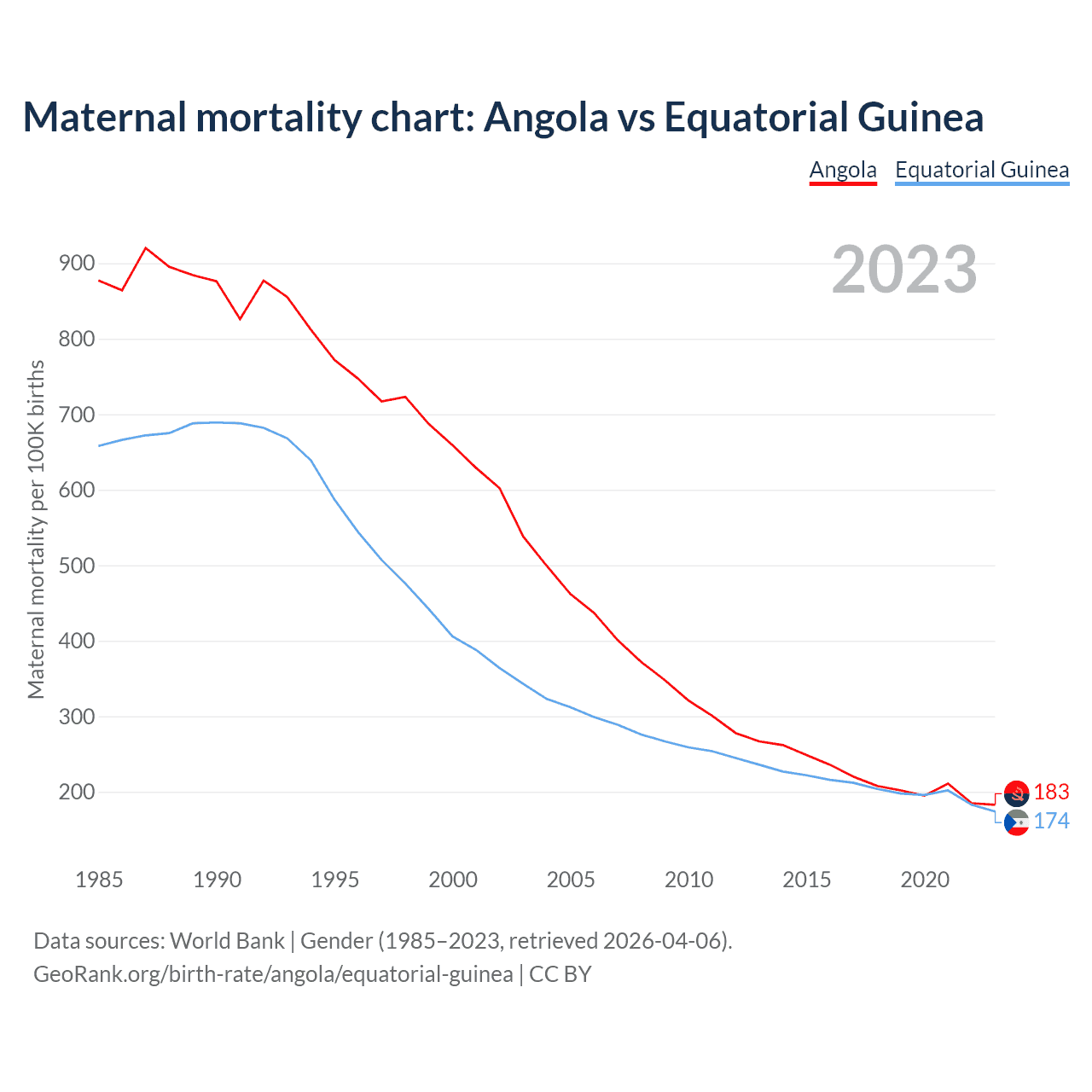 Maternal mortality chart: Angola vs Equatorial Guinea