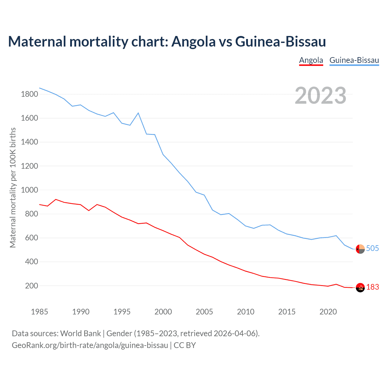 Maternal mortality chart: Angola vs Guinea-Bissau