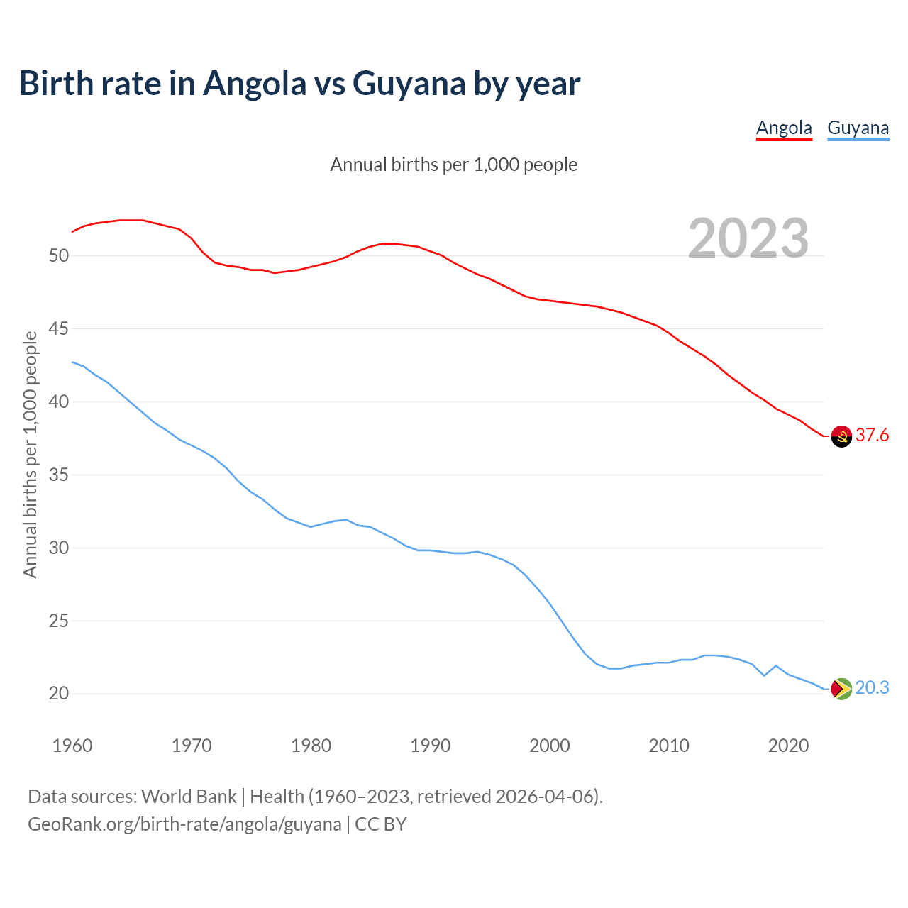GeoRank.org/birth-rate/angola/guyana | CC BY