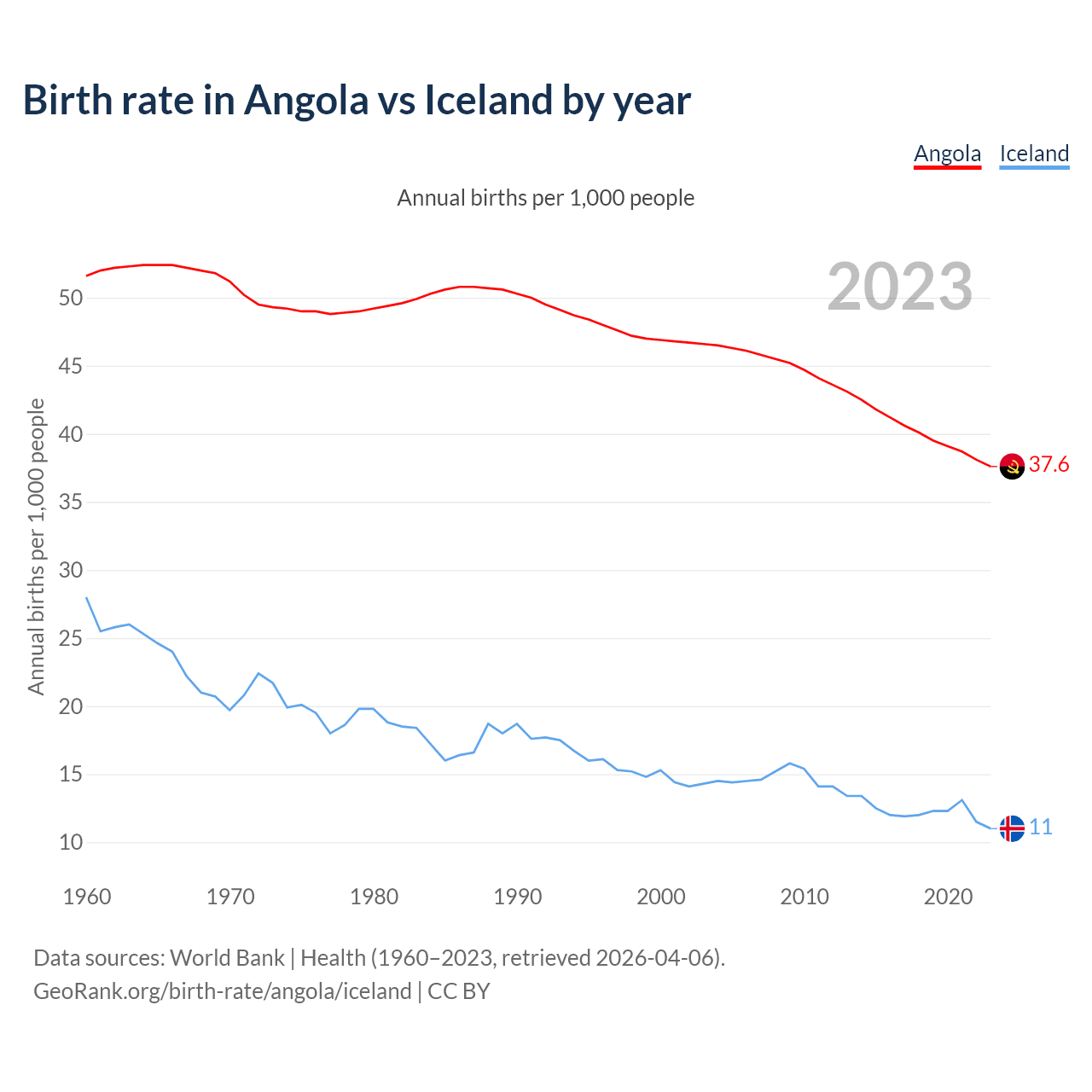GeoRank.org/birth-rate/angola/iceland | CC BY