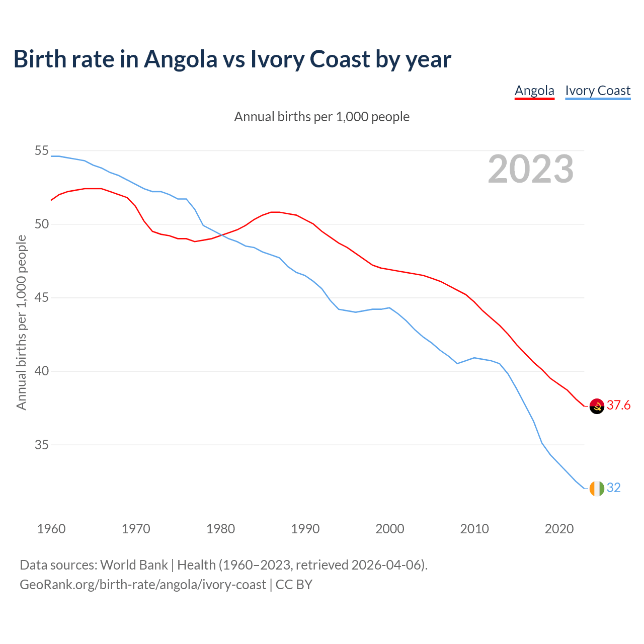 GeoRank.org/birth-rate/angola/ivory-coast | CC BY