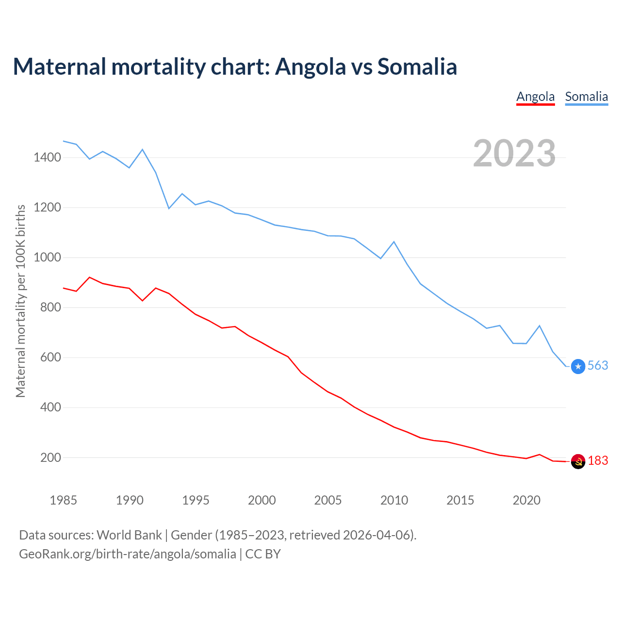 Maternal mortality chart: Angola vs Somalia