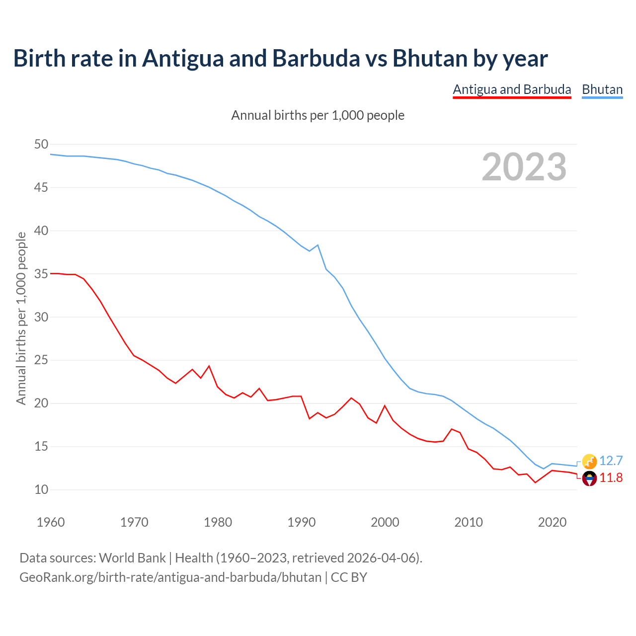 GeoRank.org/birth-rate/antigua-and-barbuda/bhutan | CC BY