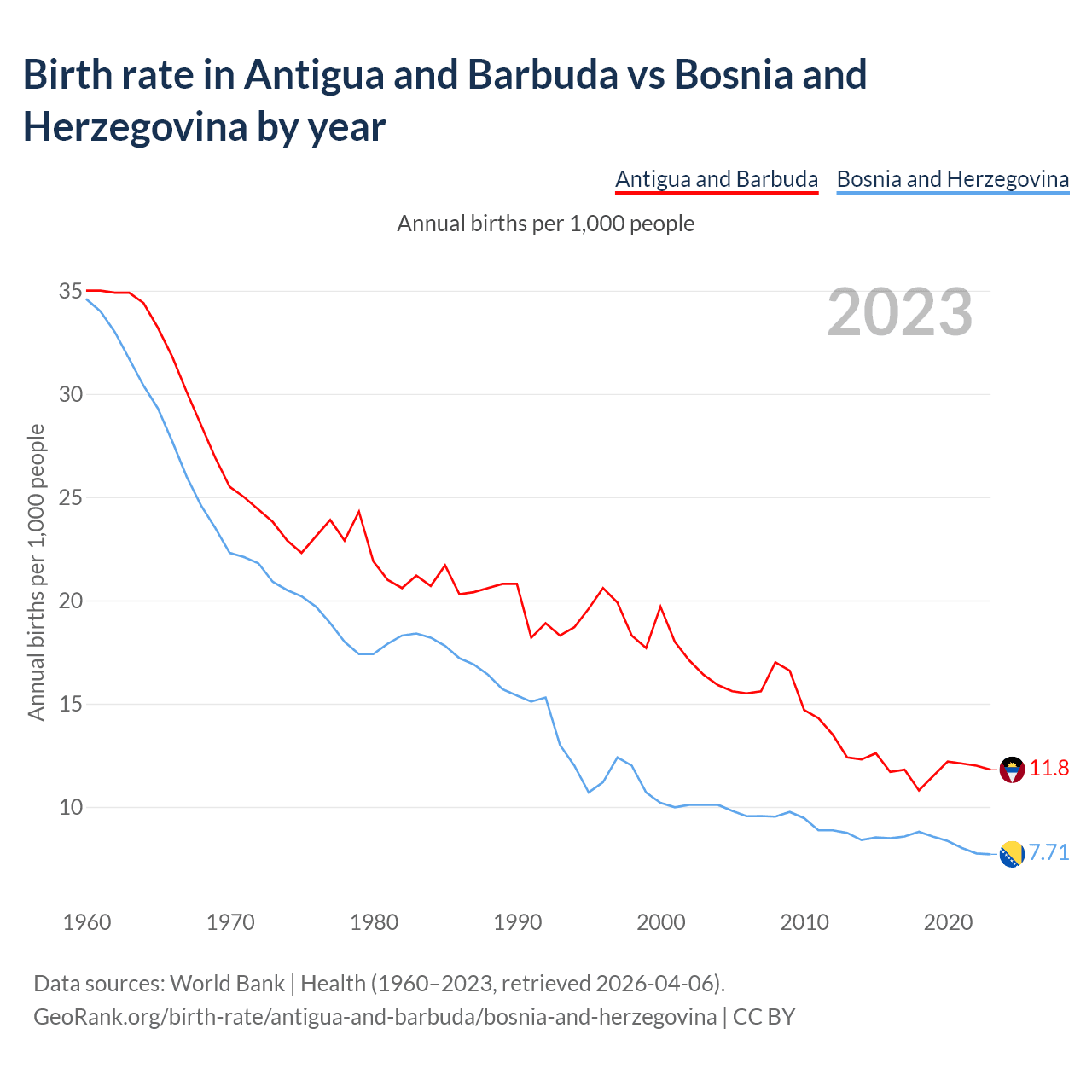 GeoRank.org/birth-rate/antigua-and-barbuda/bosnia-and-herzegovina | CC BY