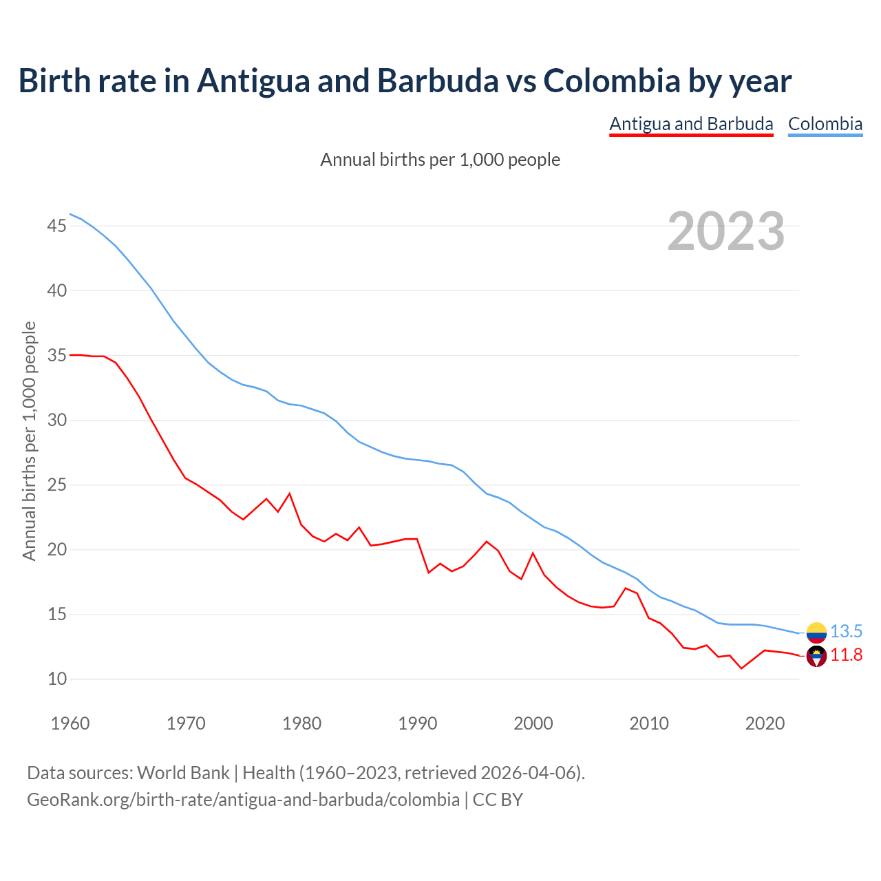 GeoRank.org/birth-rate/antigua-and-barbuda/colombia | CC BY