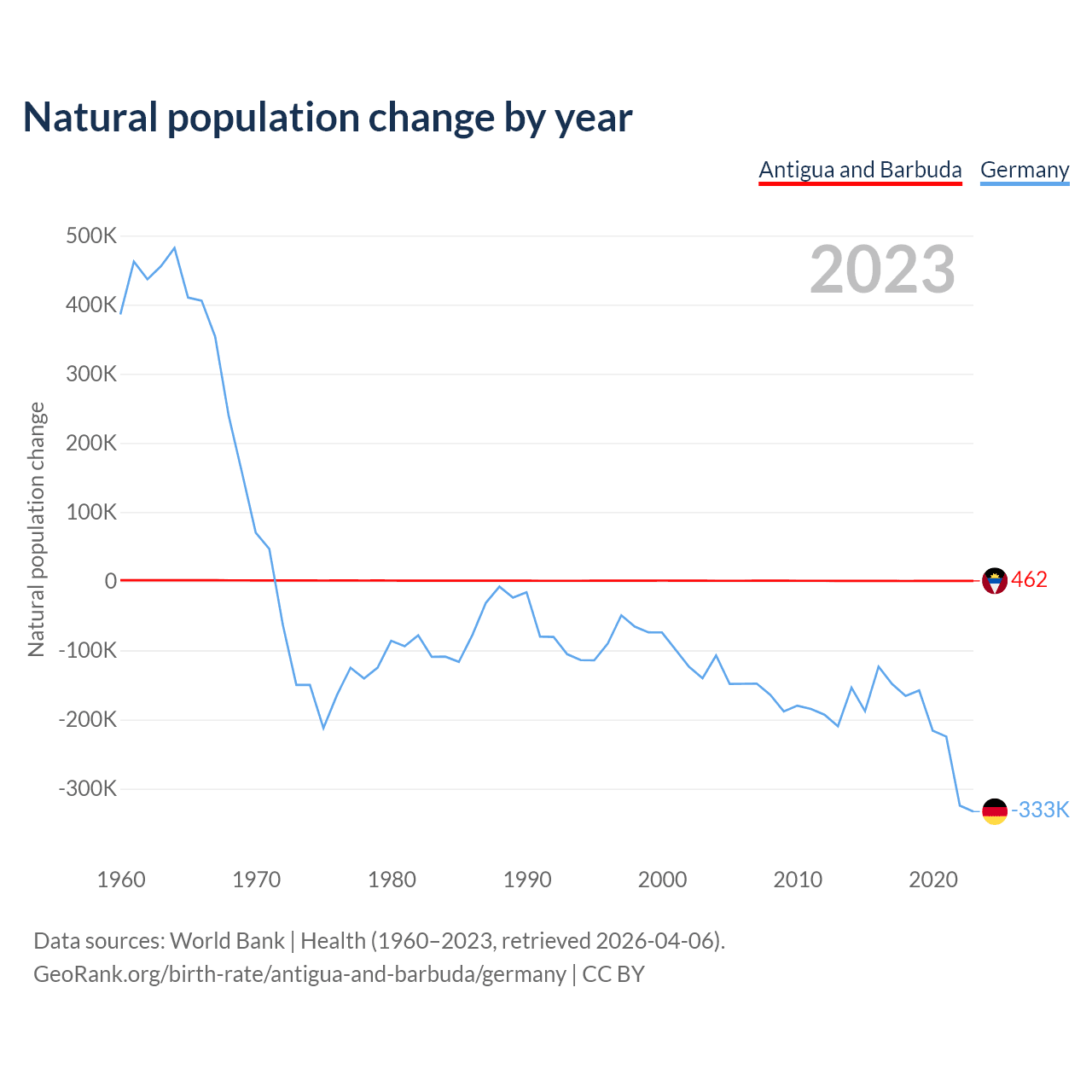 - Antigua and Barbuda is ranked 117/196 by birth rate compared to 172/196 for Germany.