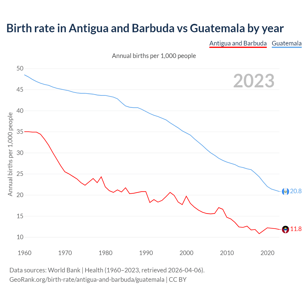 GeoRank.org/birth-rate/antigua-and-barbuda/guatemala | CC BY