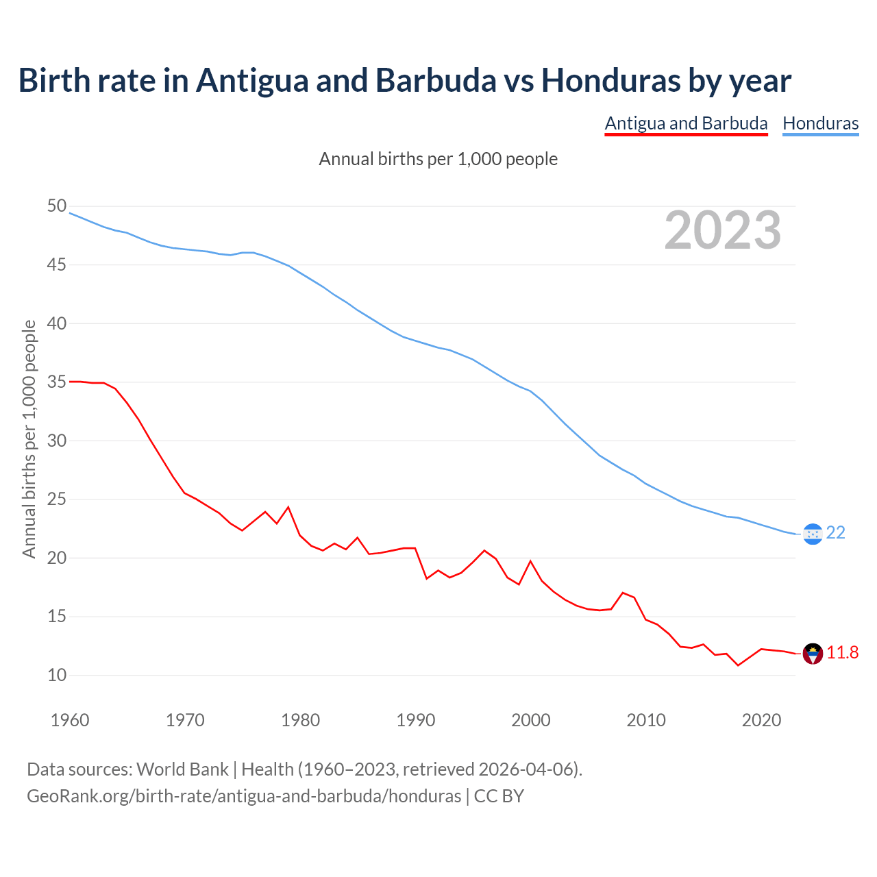 GeoRank.org/birth-rate/antigua-and-barbuda/honduras | CC BY