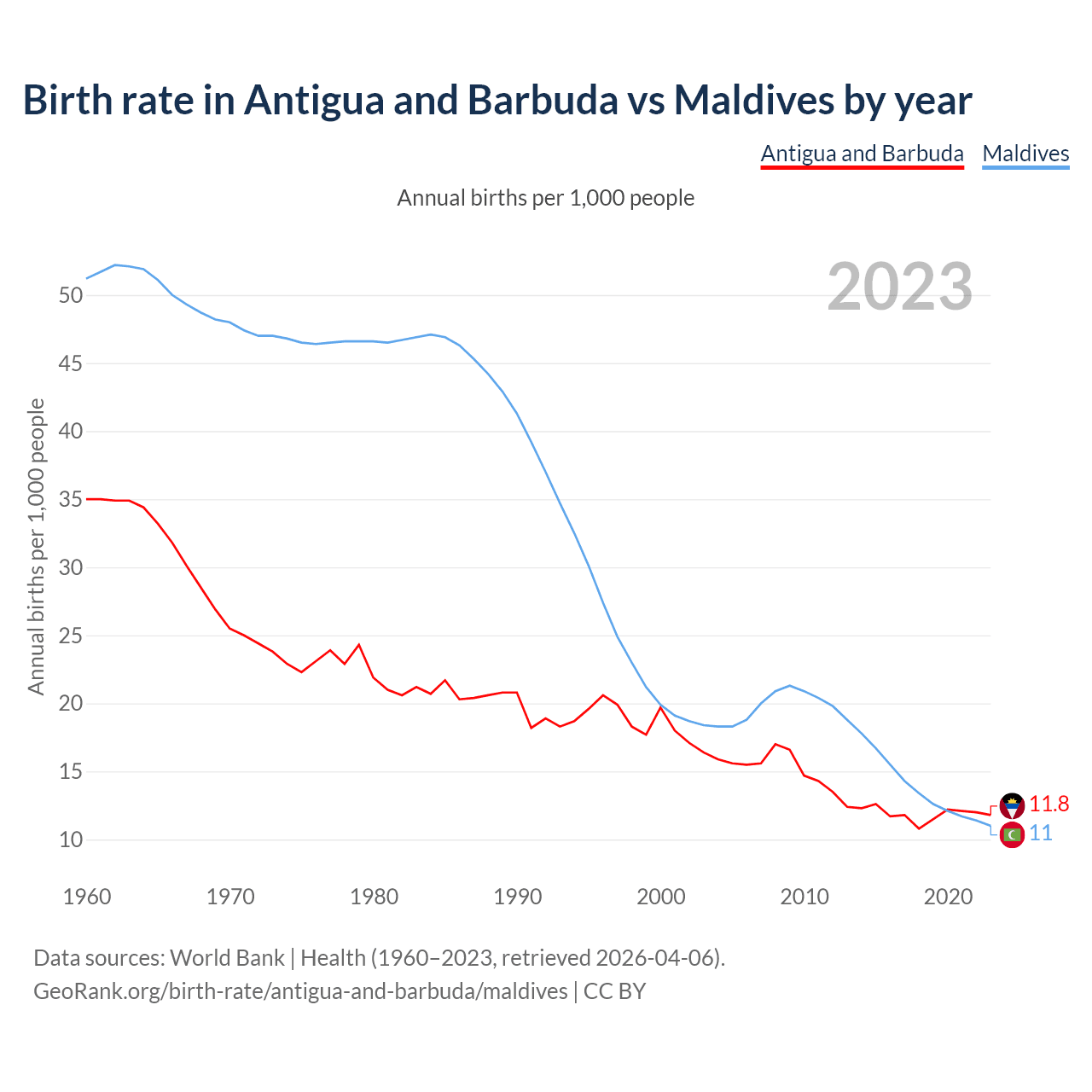 GeoRank.org/birth-rate/antigua-and-barbuda/maldives | CC BY