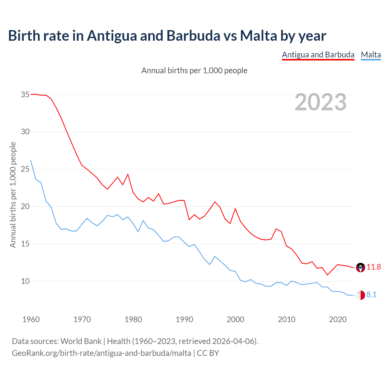 GeoRank.org/birth-rate/antigua-and-barbuda/malta | CC BY