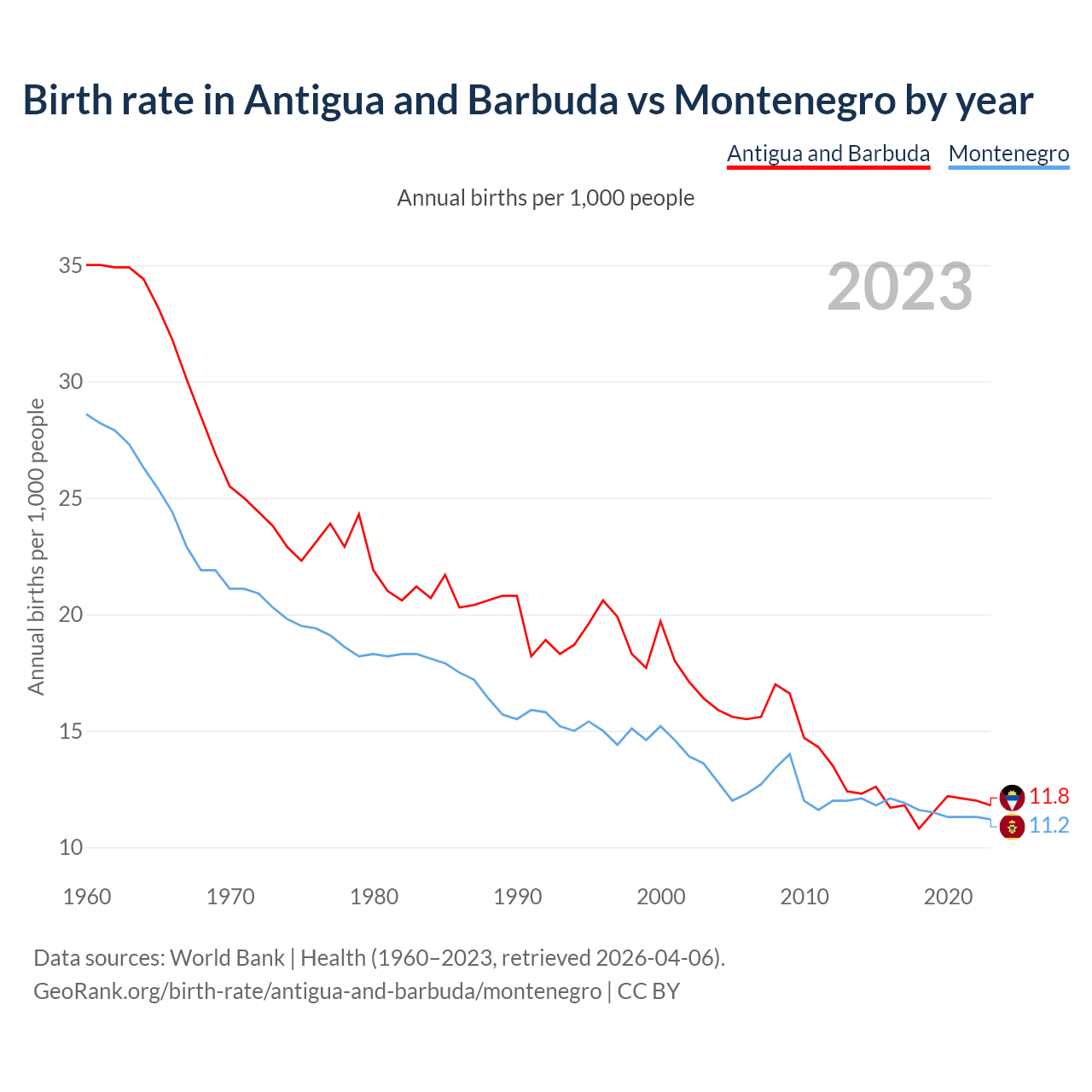 GeoRank.org/birth-rate/antigua-and-barbuda/montenegro | CC BY