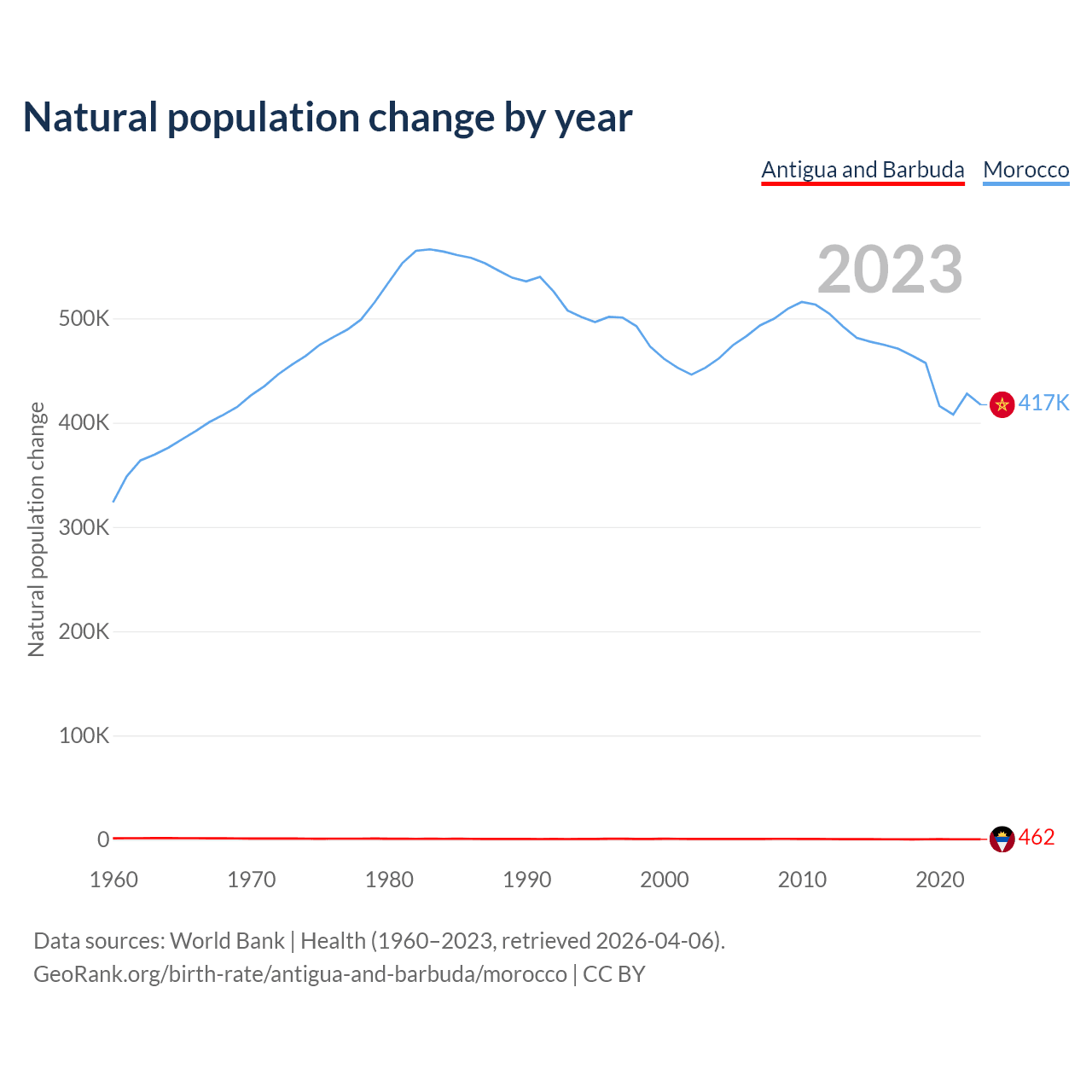 - Antigua and Barbuda is ranked 117/196 by birth rate compared to 90/196 for Morocco.