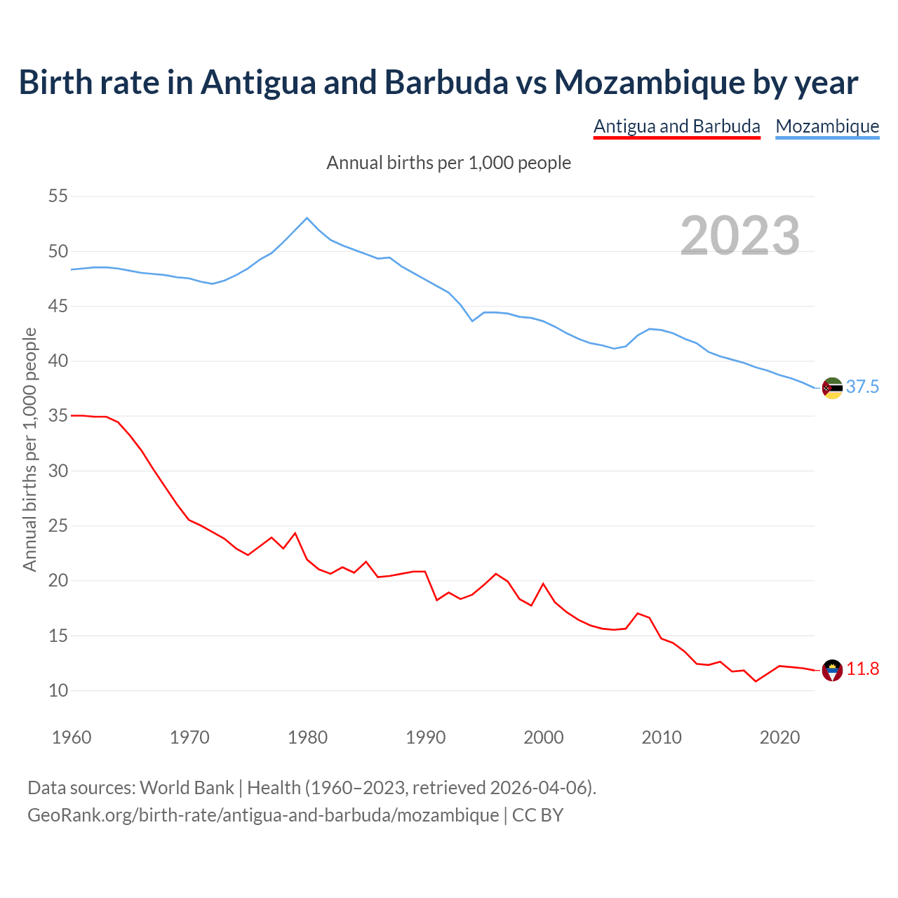 GeoRank.org/birth-rate/antigua-and-barbuda/mozambique | CC BY