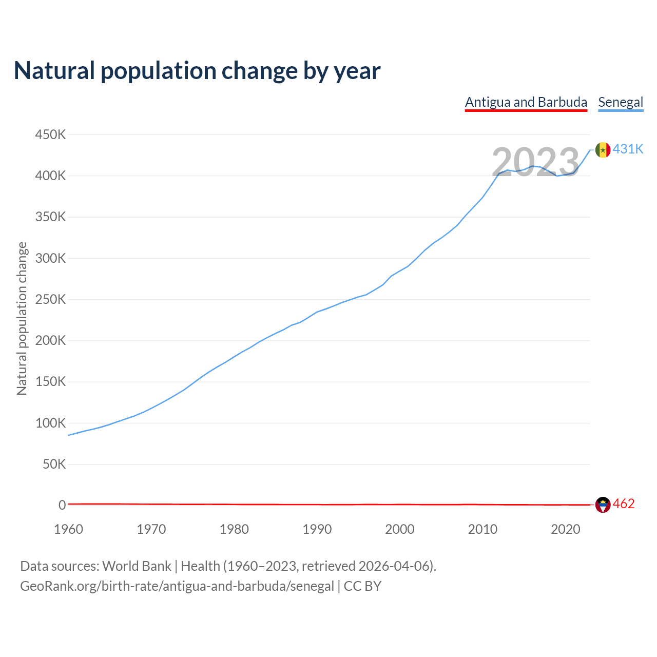 - Antigua and Barbuda is ranked 117/196 by birth rate compared to 34/196 for Senegal.