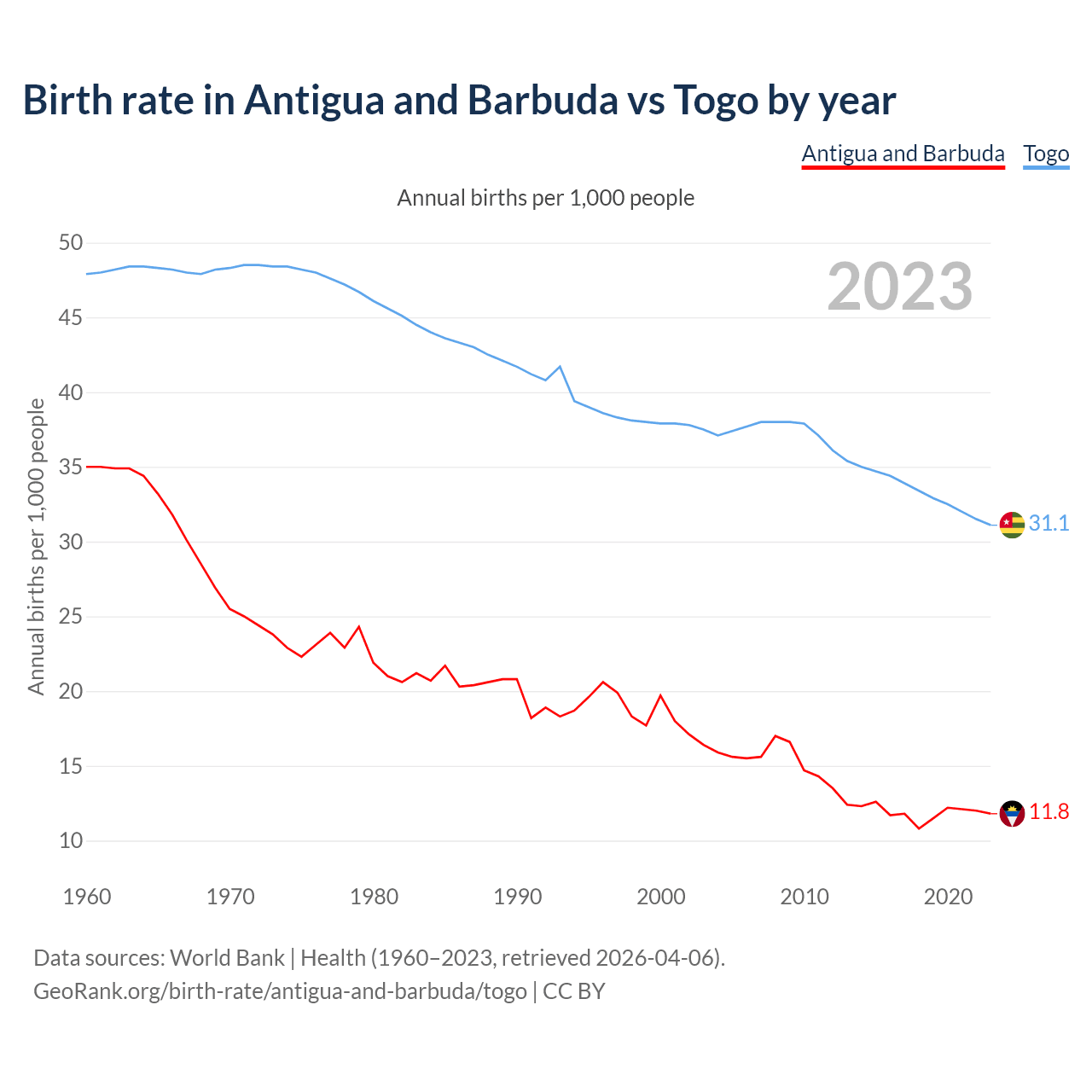 GeoRank.org/birth-rate/antigua-and-barbuda/togo | CC BY