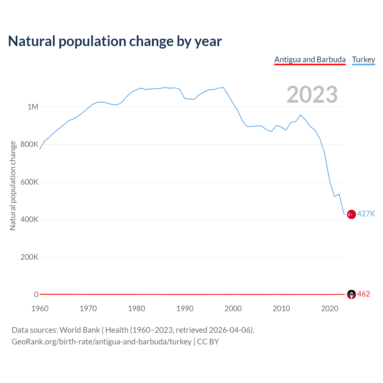 - Antigua and Barbuda is ranked 117/196 by birth rate compared to 126/196 for Turkey.