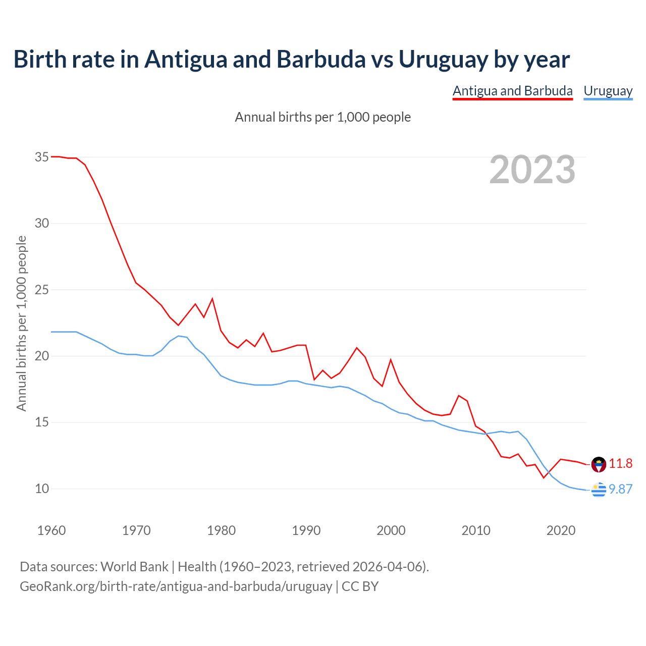 GeoRank.org/birth-rate/antigua-and-barbuda/uruguay | CC BY