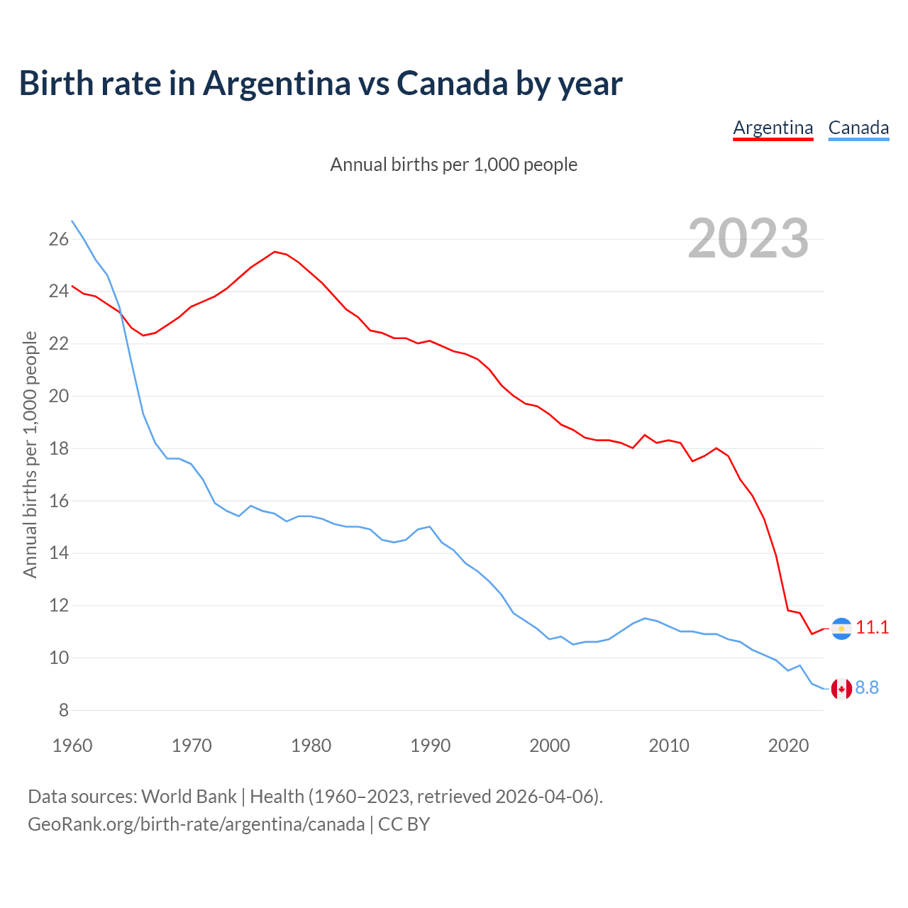 GeoRank.org/birth-rate/argentina/canada | CC BY
