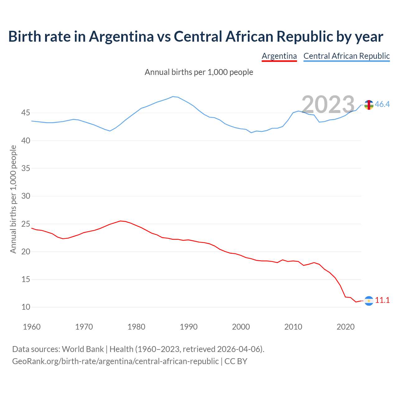 GeoRank.org/birth-rate/argentina/central-african-republic | CC BY