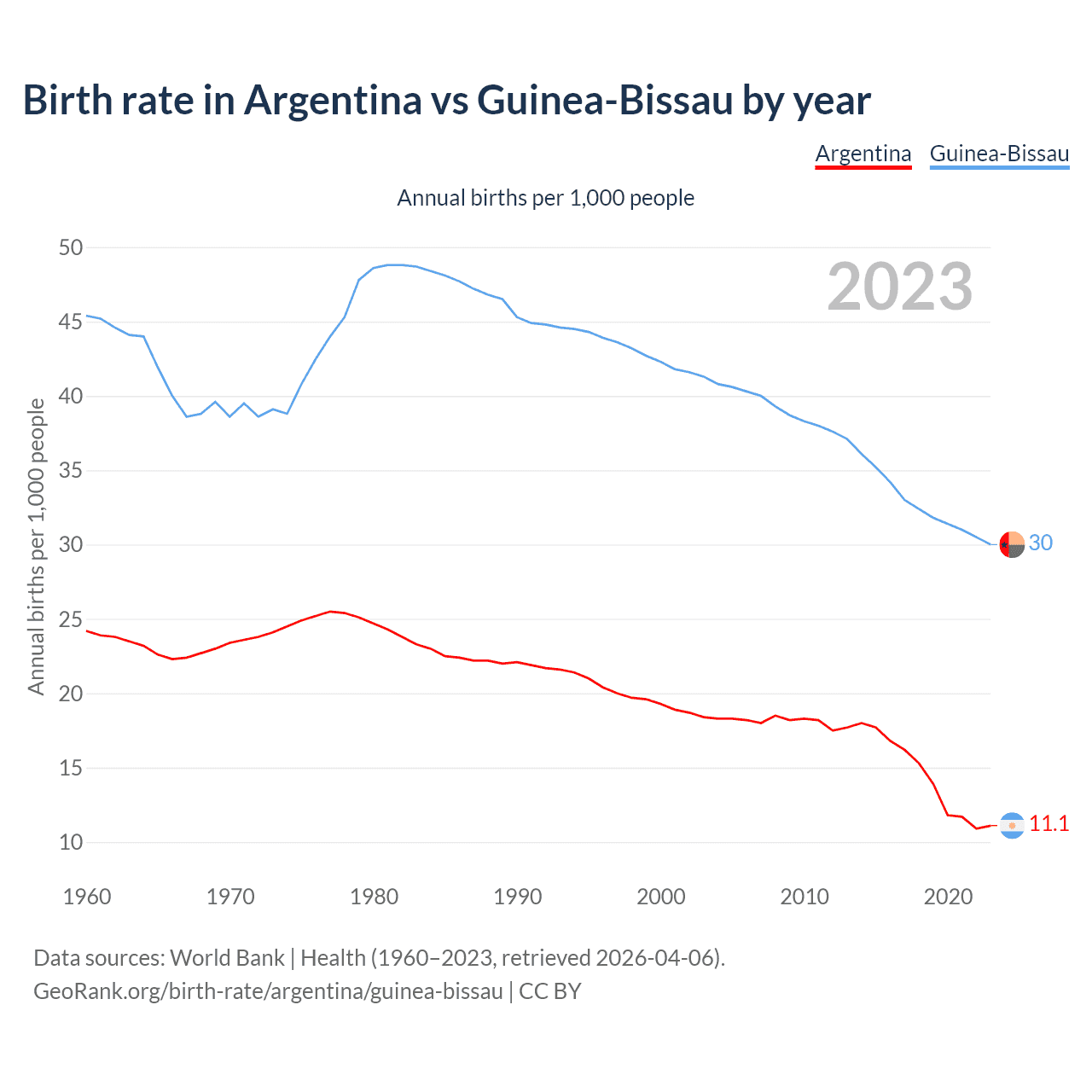 GeoRank.org/birth-rate/argentina/guinea-bissau | CC BY