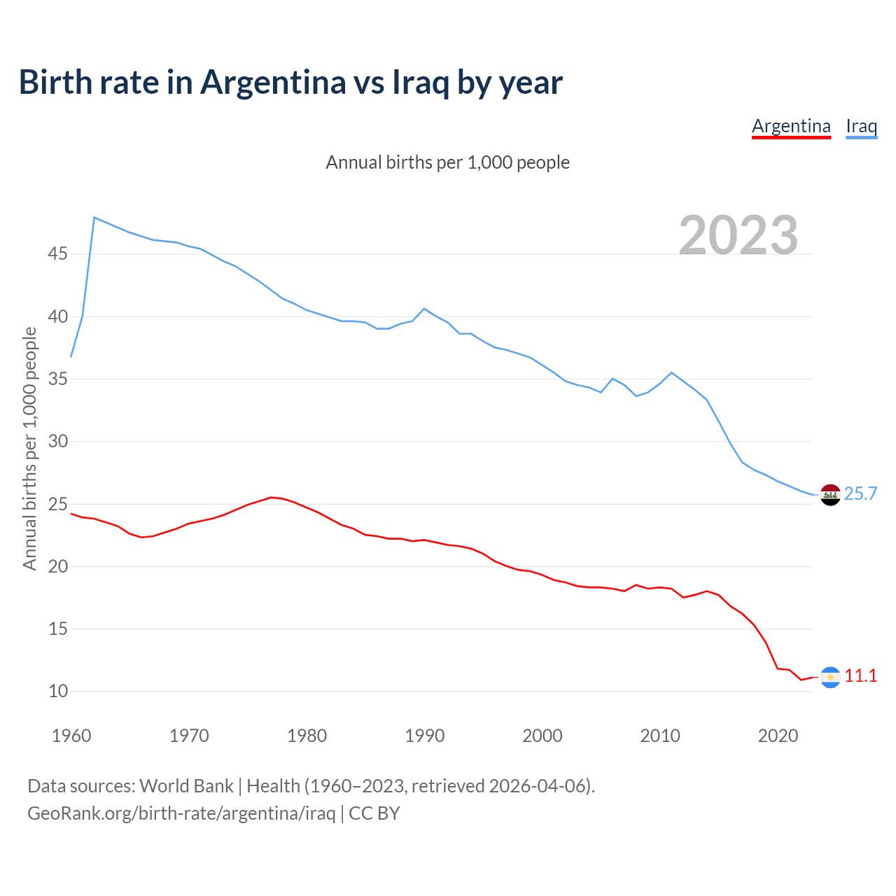 GeoRank.org/birth-rate/argentina/iraq | CC BY