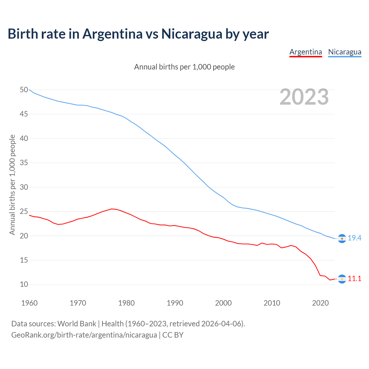 GeoRank.org/birth-rate/argentina/nicaragua | CC BY