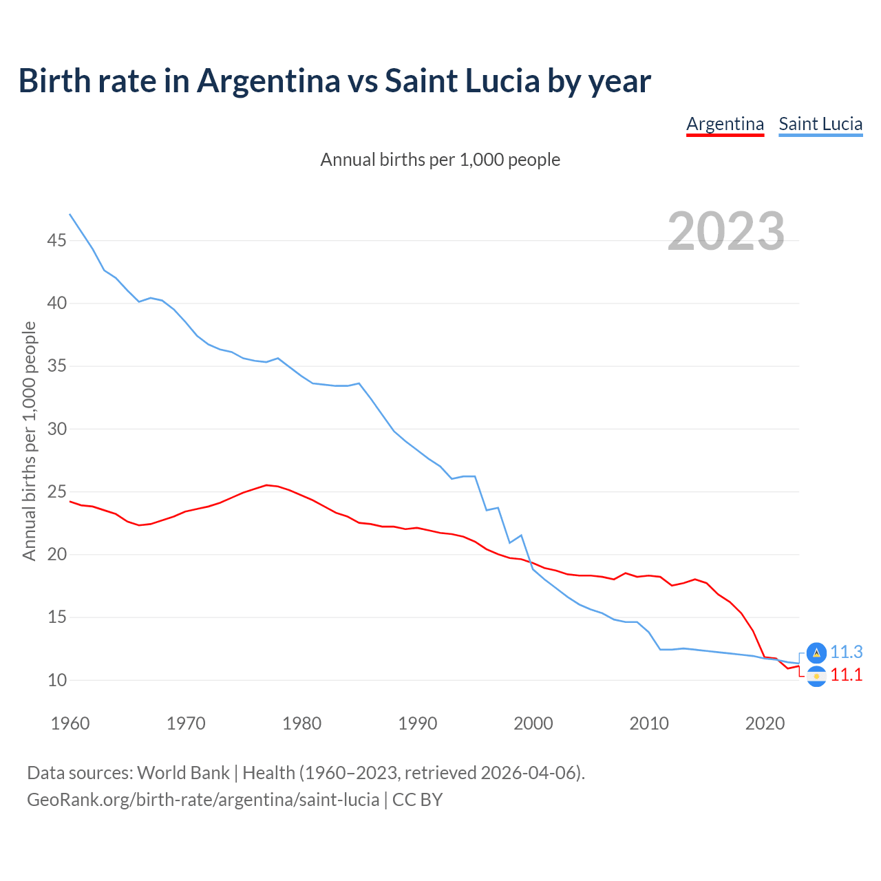 GeoRank.org/birth-rate/argentina/saint-lucia | CC BY