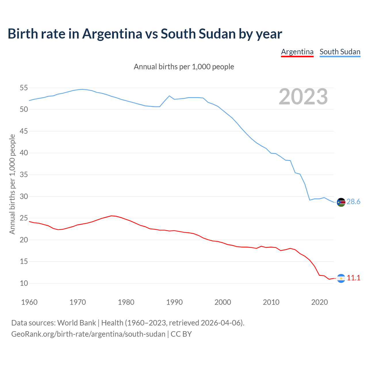 GeoRank.org/birth-rate/argentina/south-sudan | CC BY