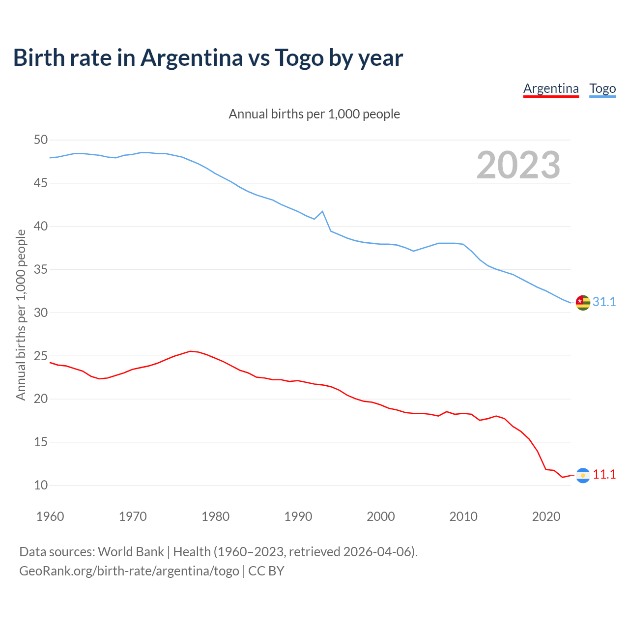 GeoRank.org/birth-rate/argentina/togo | CC BY