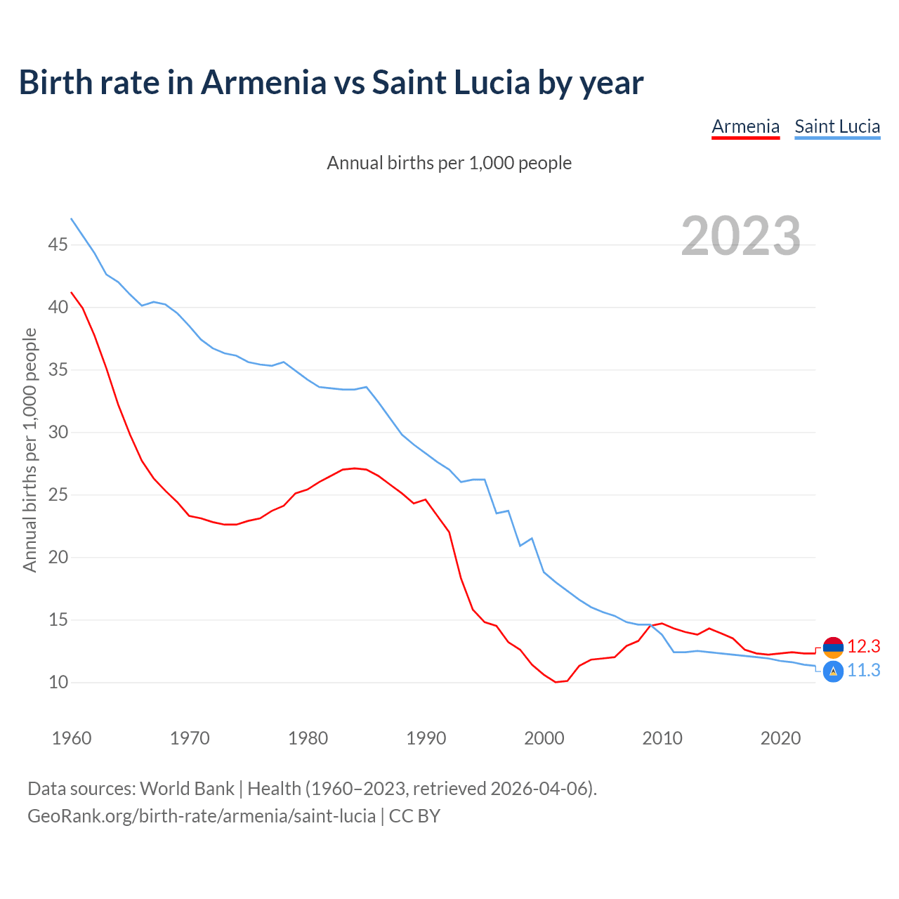 GeoRank.org/birth-rate/armenia/saint-lucia | CC BY