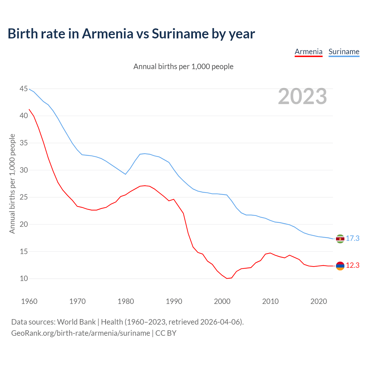 GeoRank.org/birth-rate/armenia/suriname | CC BY