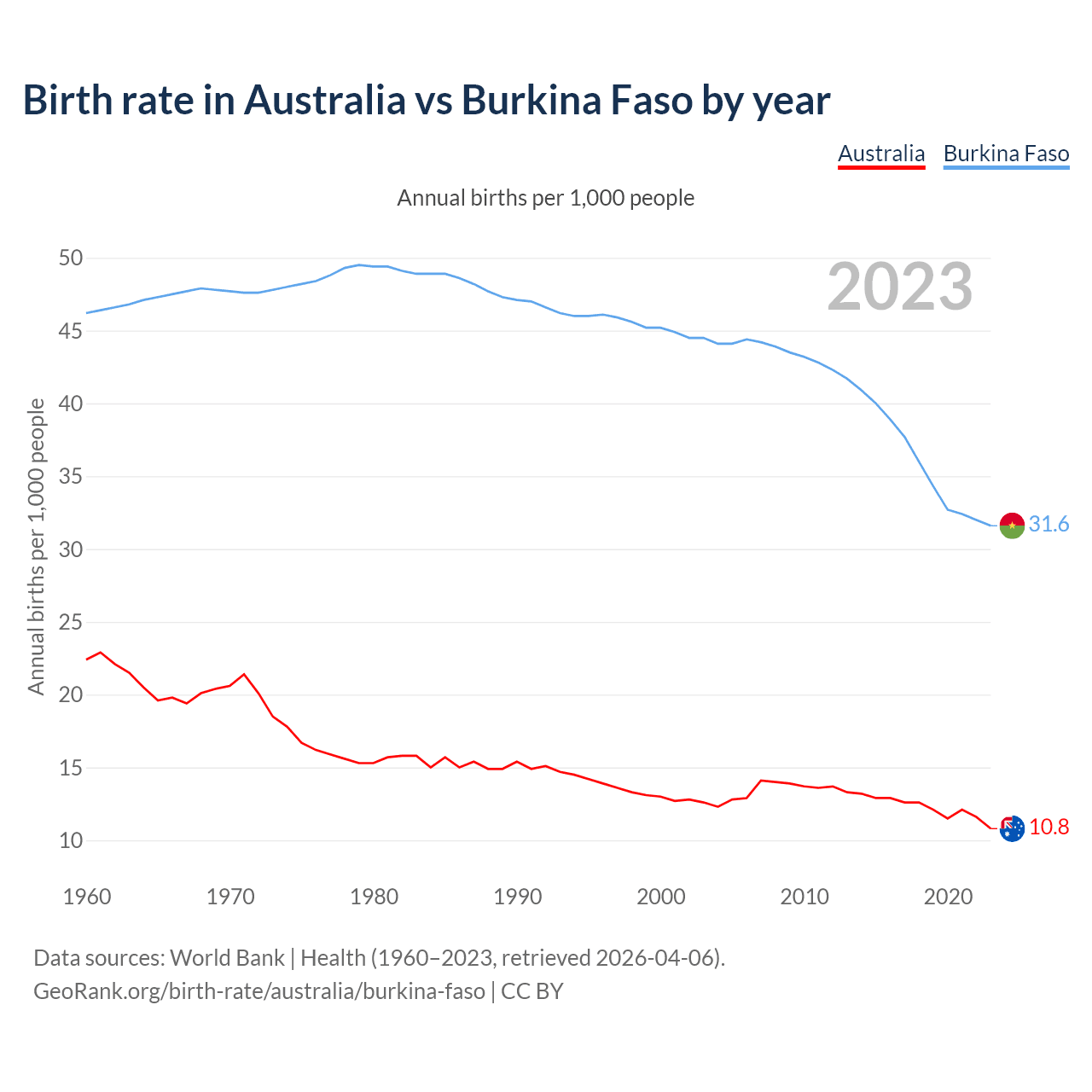 GeoRank.org/birth-rate/australia/burkina-faso | CC BY