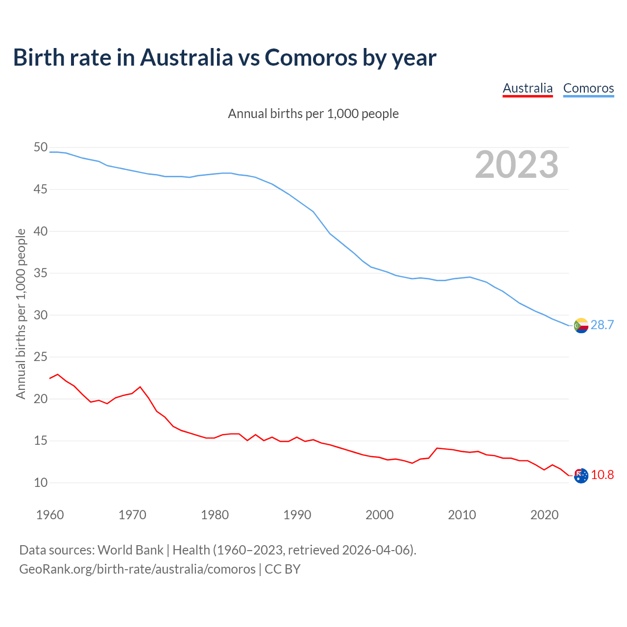 GeoRank.org/birth-rate/australia/comoros | CC BY