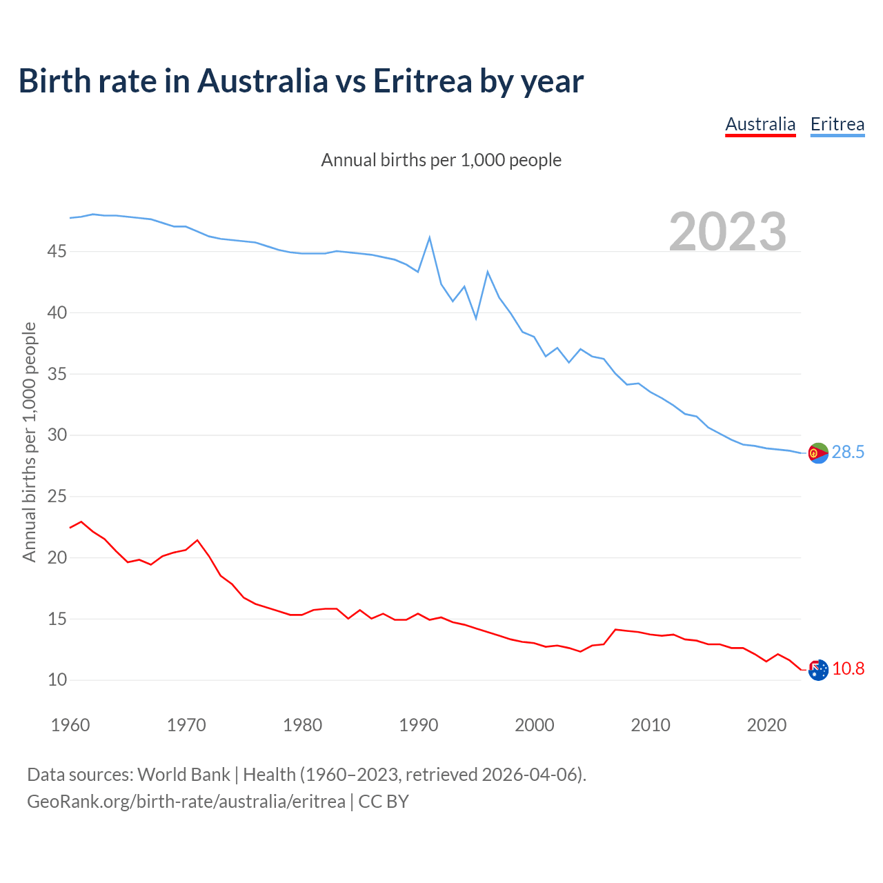 GeoRank.org/birth-rate/australia/eritrea | CC BY