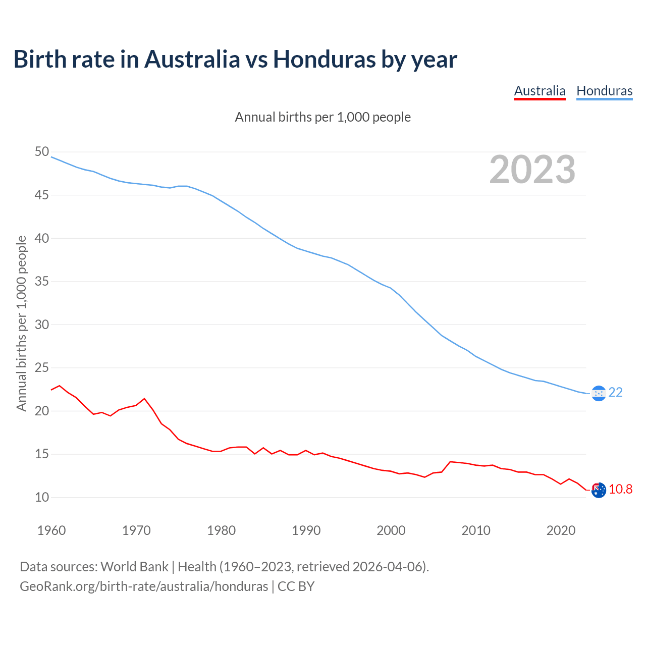 GeoRank.org/birth-rate/australia/honduras | CC BY