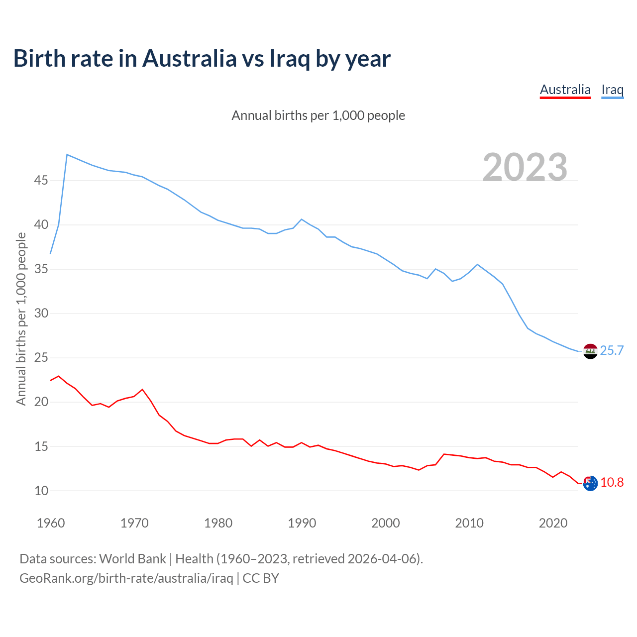 GeoRank.org/birth-rate/australia/iraq | CC BY