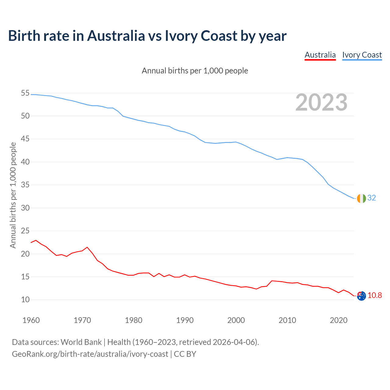 GeoRank.org/birth-rate/australia/ivory-coast | CC BY