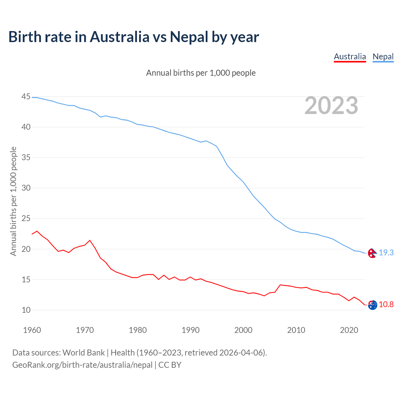 GeoRank.org/birth-rate/australia/nepal | CC BY
