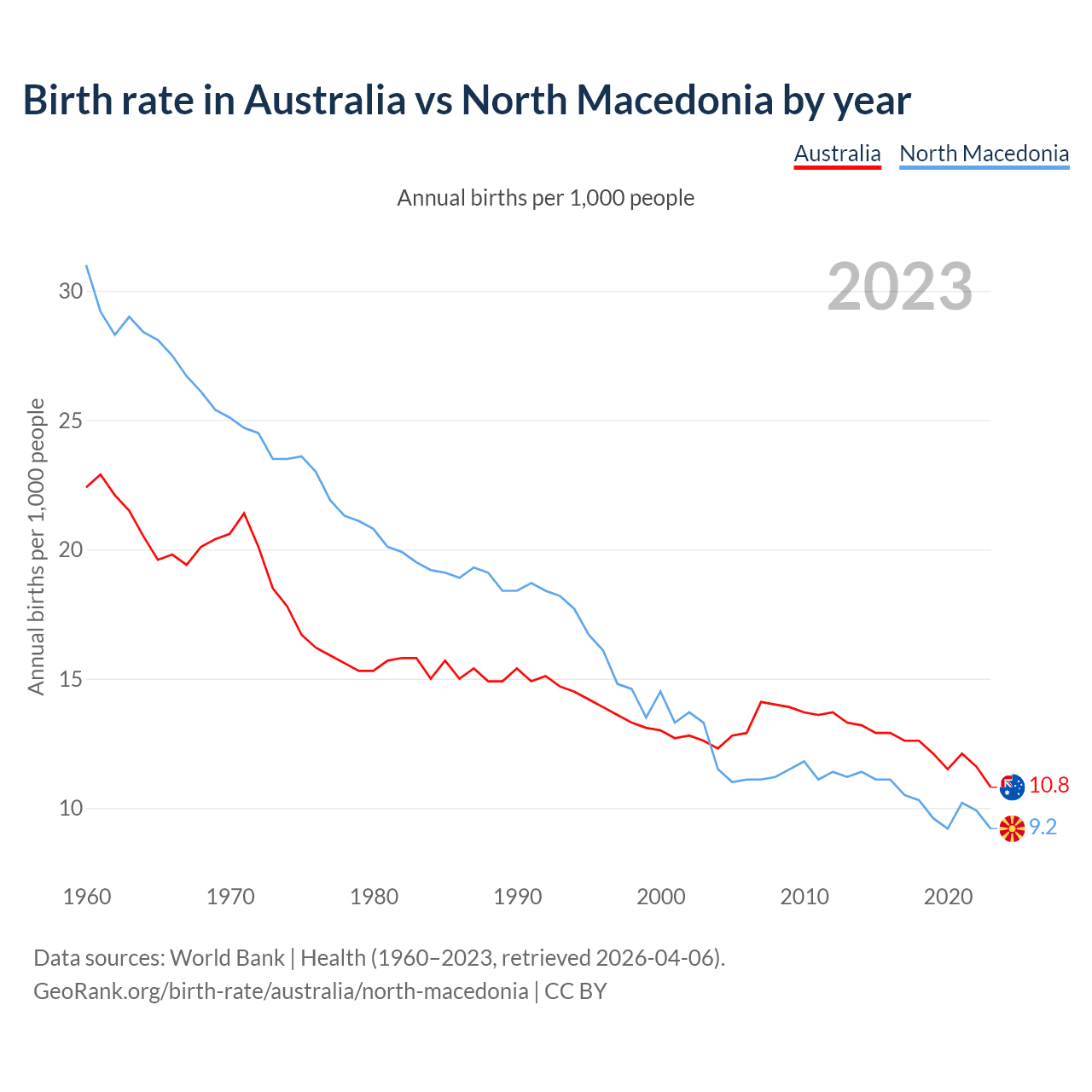 GeoRank.org/birth-rate/australia/north-macedonia | CC BY