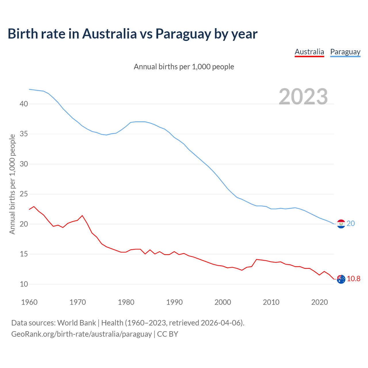 GeoRank.org/birth-rate/australia/paraguay | CC BY