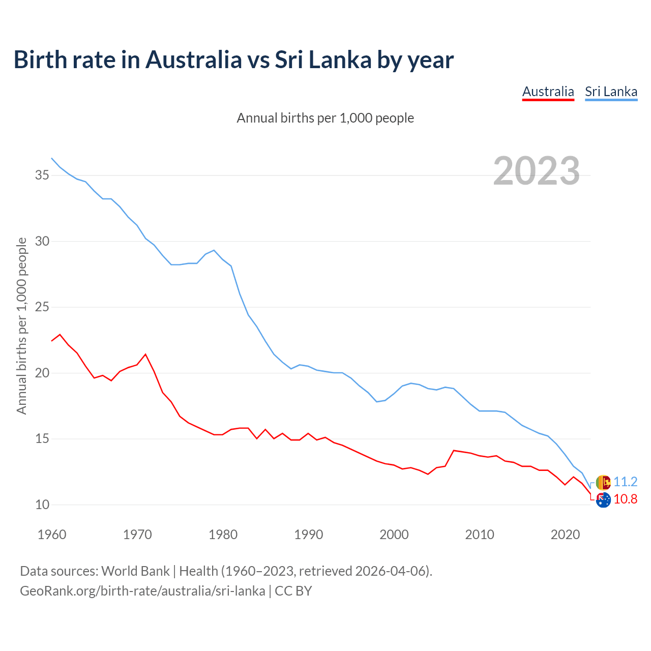 GeoRank.org/birth-rate/australia/sri-lanka | CC BY