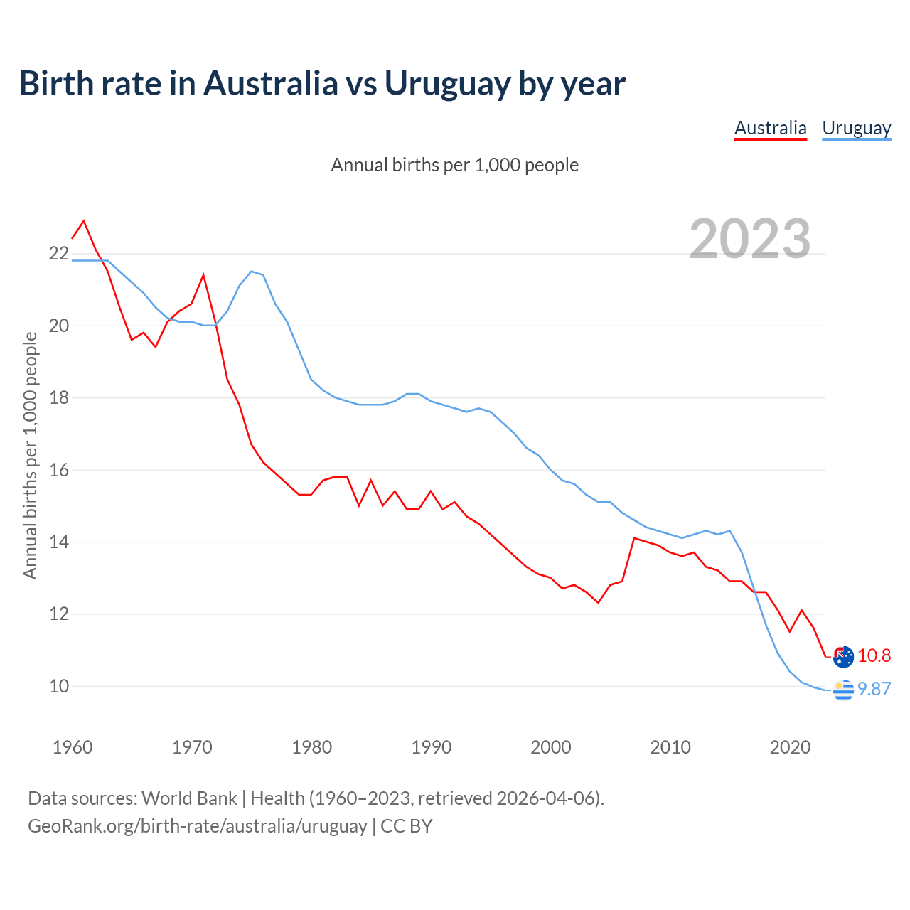 GeoRank.org/birth-rate/australia/uruguay | CC BY