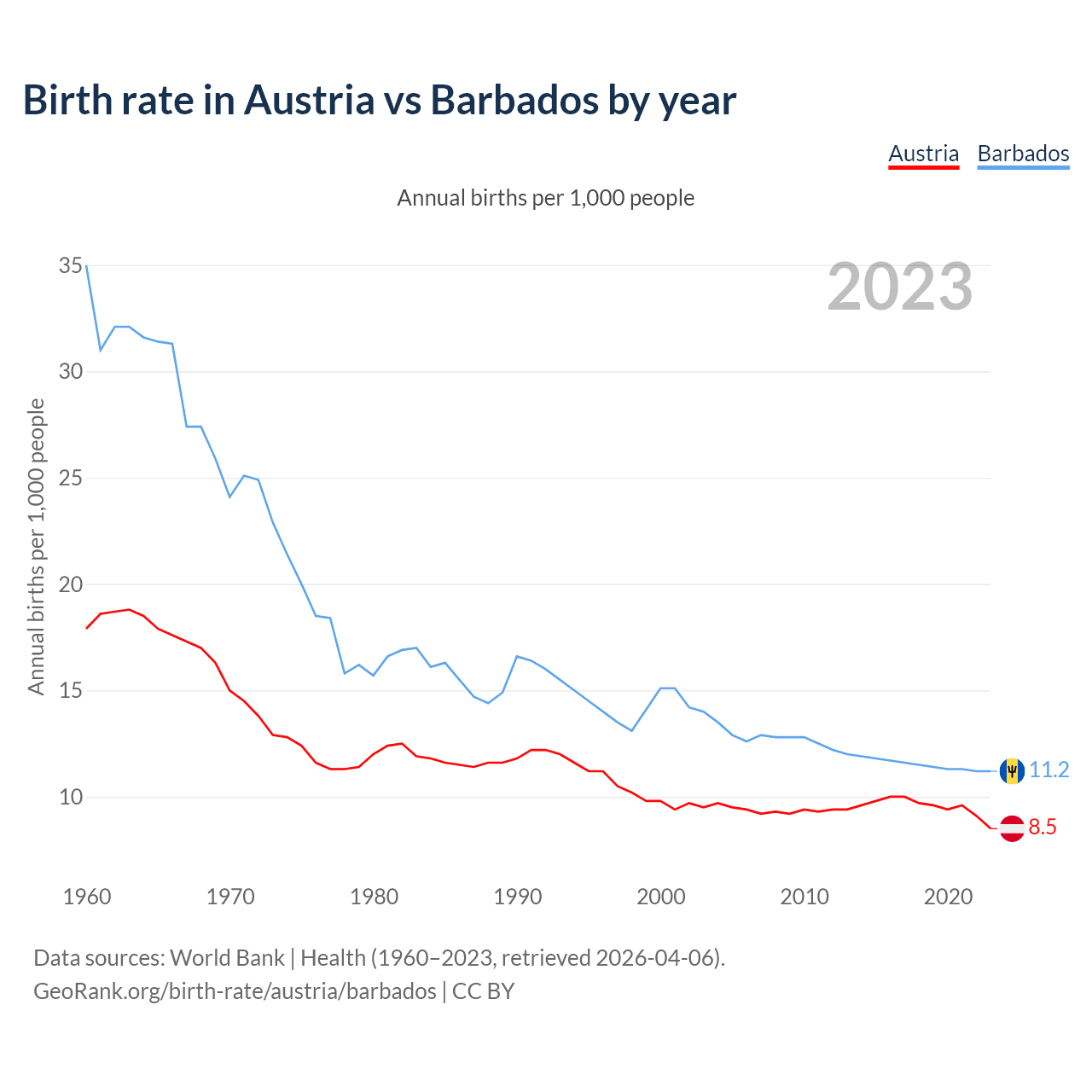 GeoRank.org/birth-rate/austria/barbados | CC BY