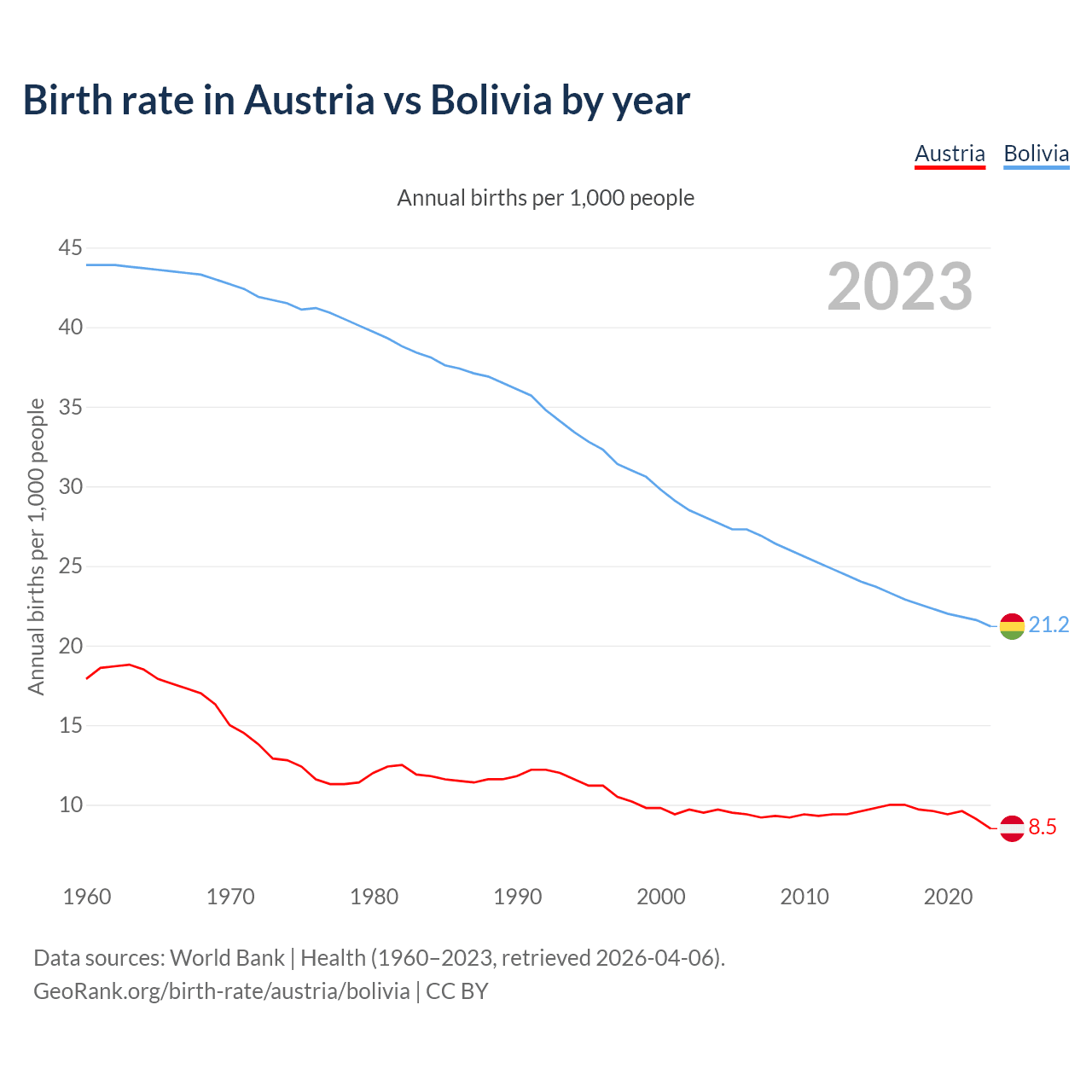 GeoRank.org/birth-rate/austria/bolivia | CC BY