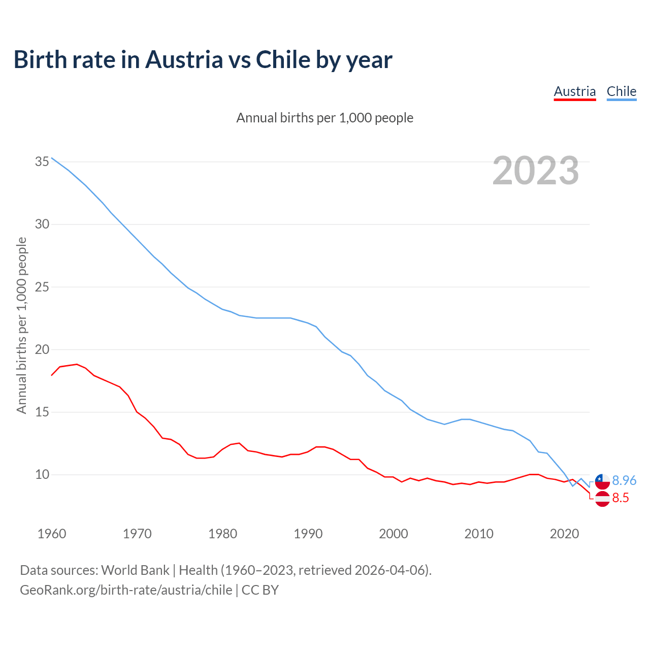 GeoRank.org/birth-rate/austria/chile | CC BY