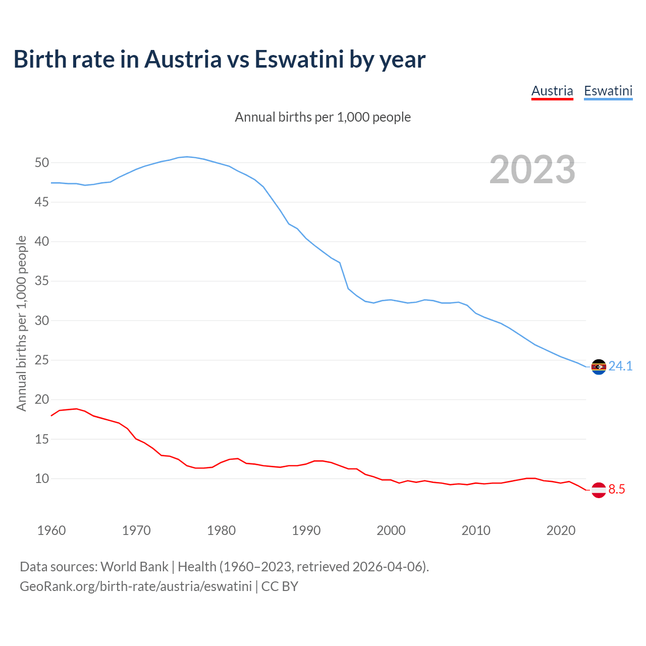 GeoRank.org/birth-rate/austria/eswatini | CC BY