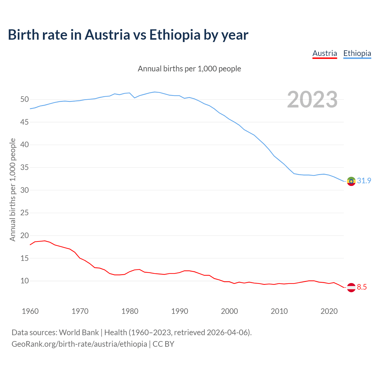 GeoRank.org/birth-rate/austria/ethiopia | CC BY